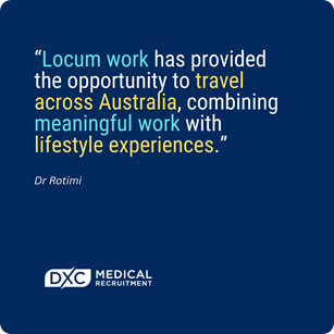For Dr Rotimi, the most rewarding aspects of locum work extend beyond clinical practice. Meeting new people, building professional relationships, and forming friendships have been highlights of his journey. Locum work has also provided the opportunity to travel across Australia, combining meaningful work with lifestyle experiences.