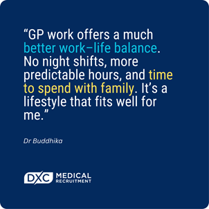 “GP work offers a much better work–life balance. No night shifts, more predictable hours, and time to spend with family. It’s a lifestyle that fits well for me.”